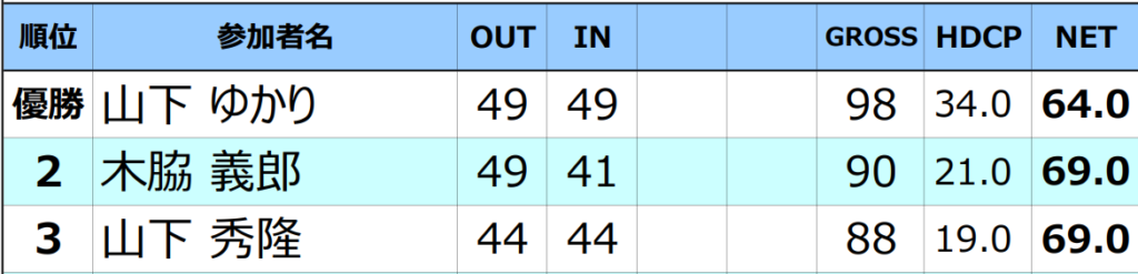 令和7年11月2日(日曜日)月例杯成績